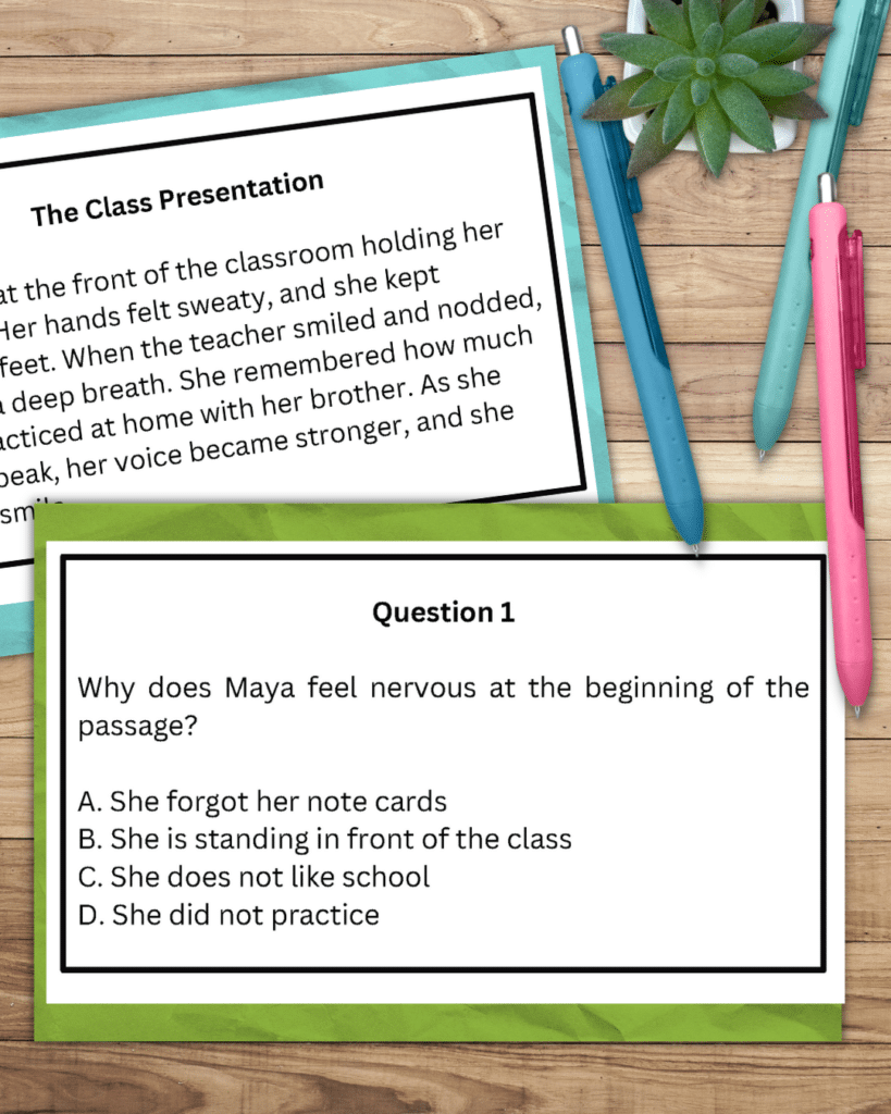 It still looks like passage practice — but it feels different. This is a great addition to your test prep reading stations.